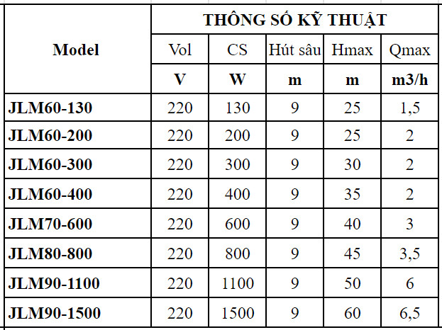 - Đẩy cao < 25m, thích hợp với độ cao tương đương nhà 2-3 tầng (Tùy vào công suất bơm)