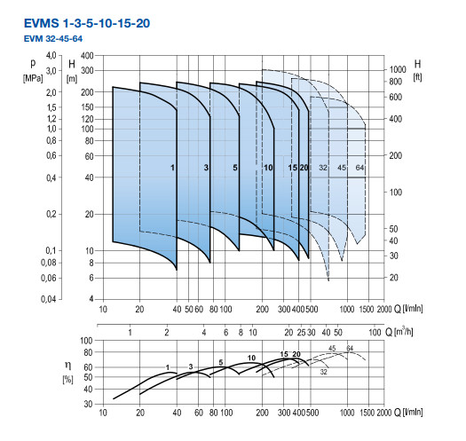 • Phiên bản chất liệu (vỏ dưới cùng) EVMS (AISI 304), EVMSL (AISI 316L)