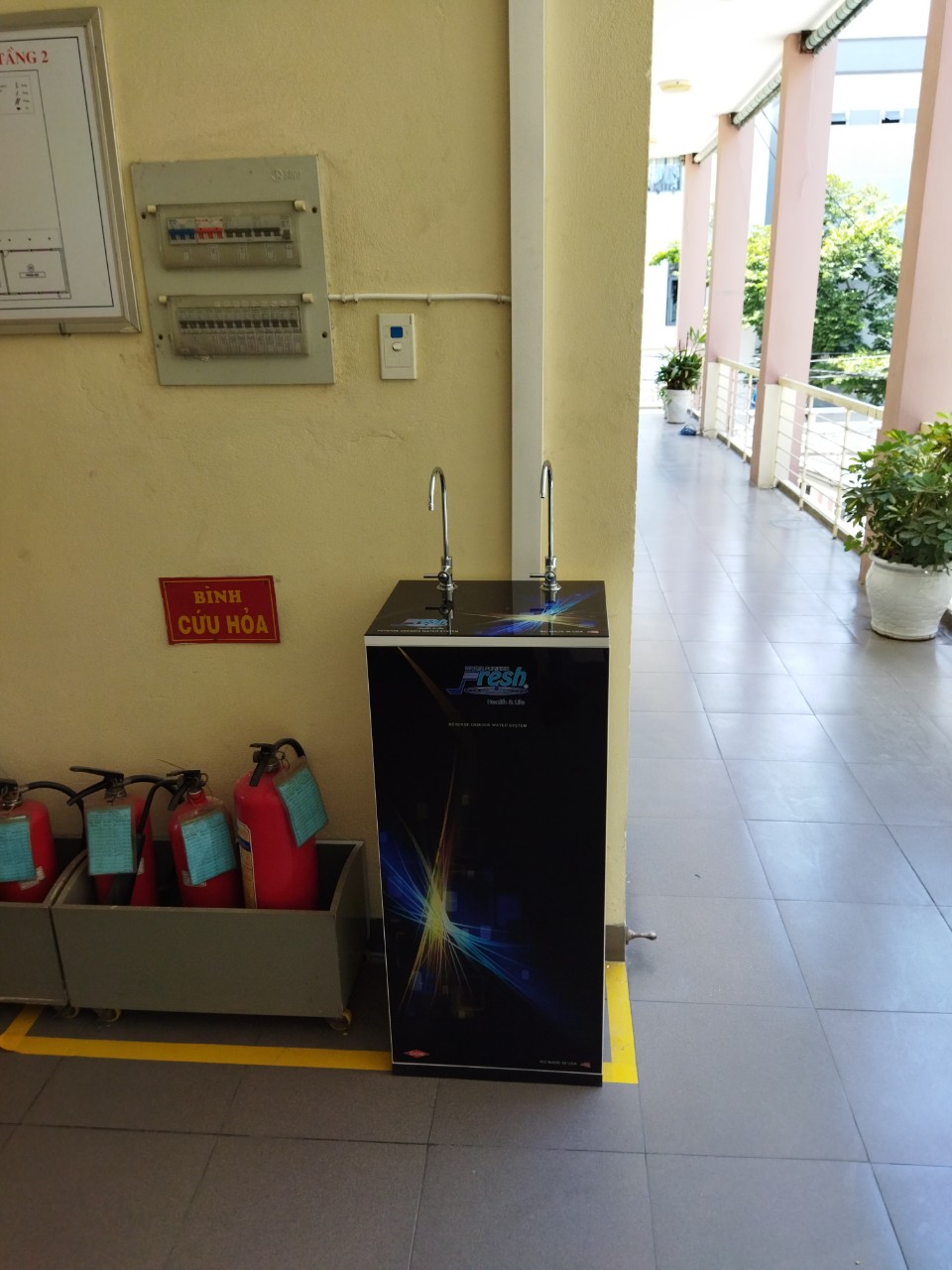 Từ 1 hệ thống lọc nước RO nước được cấp cho 6 máy lấy nước uống 2 vòi và 1 tủ inox lấy nước bình 20 lít thuận dễ dàng.