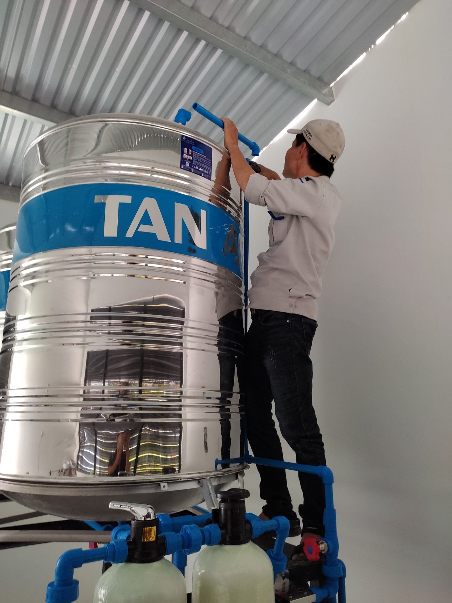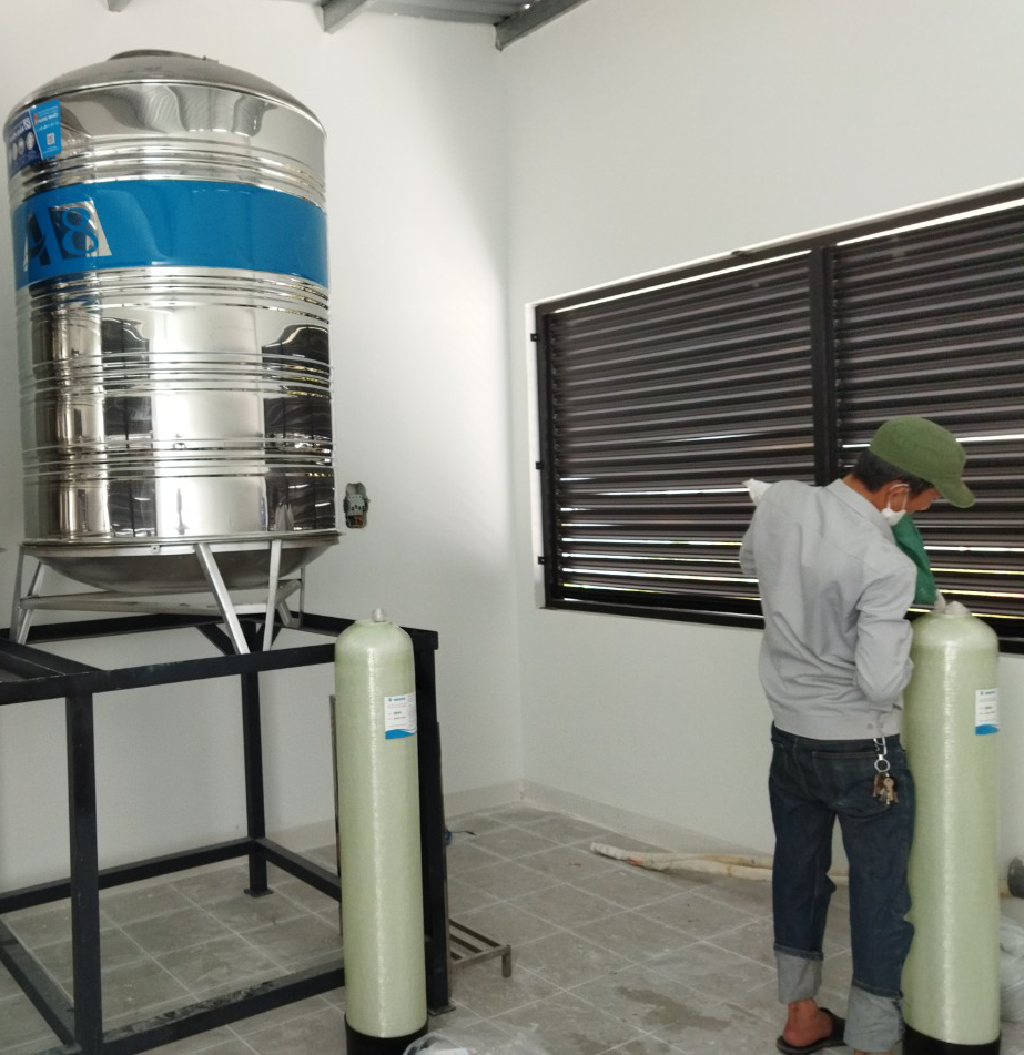 Lúc trước đã lắp một bộ lọc nước giếng cho nhà mẹ anh ở Hòa Khương, giúp cho mẹ anh có nguồn nước sạch để dùng. Hôm nay Đức Trân lại được anh gọi và lắp thêm một bộ lọc tổng với công suất 500l/h cho nhà mới xây.