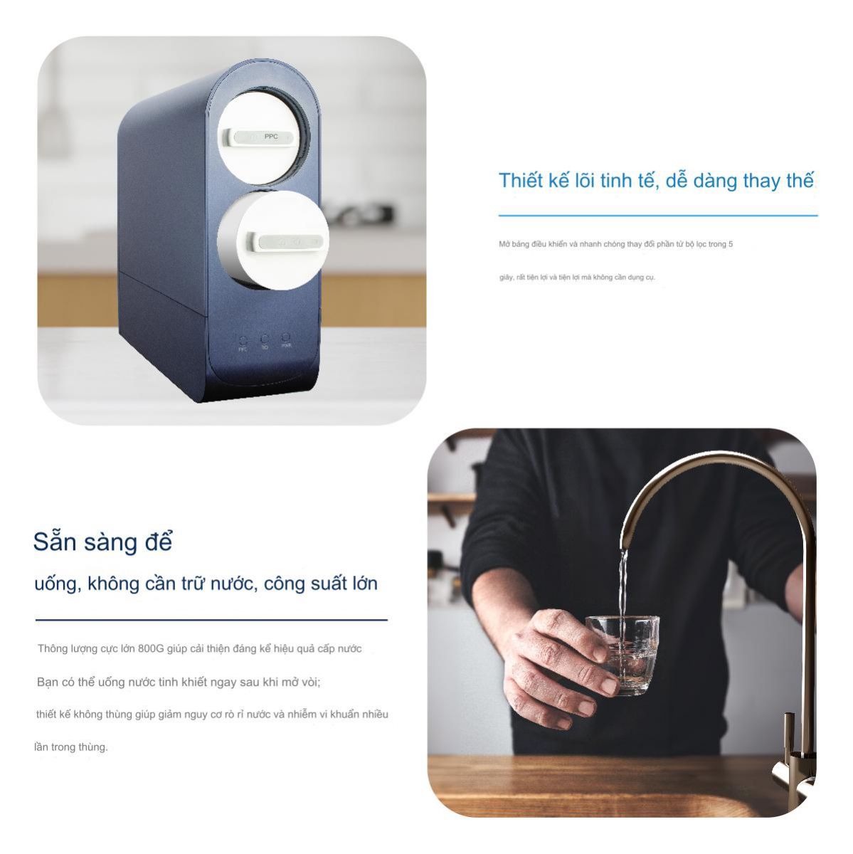 - Máy có khả năng cung cấp cả nước nóng và nước lạnh, đáp ứng nhu cầu đa dạng của người sử dụng.